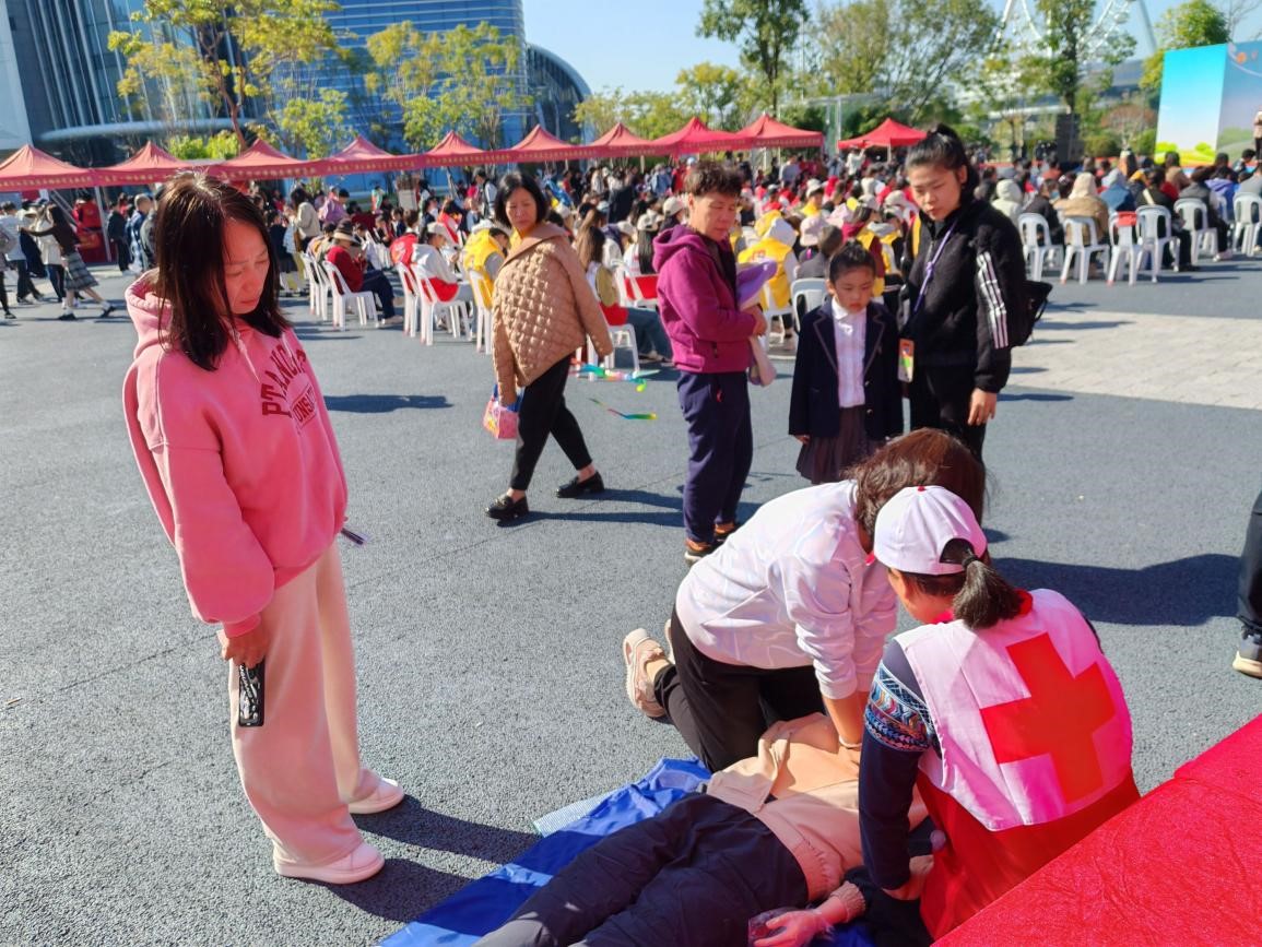 急救知識是保障生命安全的重要防線。在社區(qū)廣場上,另一組志愿者們他們利用人體模型,現(xiàn)場演示心肺復蘇等常用急救技能的操作步驟,從按壓的位置、頻率、深度,到氣道的打開方式、異物的排出技巧等,都一一詳細解說并反復示范。居民們紛紛踴躍參與,在志愿者的指導下親身體驗急救操作,許多居民表示:“這些急救知識和技能以前只是聽說過,今天真正上手操作了才知道其中的要點和重要性,以后遇到突發(fā)情況心里就有底了。”