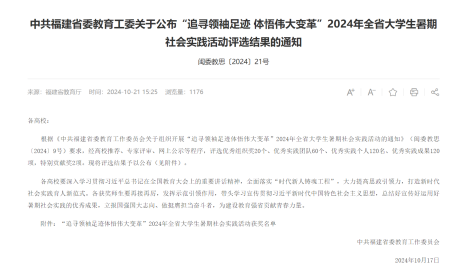 正是這份執(zhí)著與擔(dān)當(dāng),讓元欣怡在眾多參與者中嶄露頭角,榮獲福建省教育廳“追尋領(lǐng)袖足跡,體悟偉大變革”優(yōu)秀實(shí)踐學(xué)生榮譽(yù)稱號(hào)。這一榮譽(yù)不僅是對(duì)她個(gè)人努力的肯定,更是對(duì)所有積極投身社會(huì)實(shí)踐的學(xué)子們的鼓勵(lì)。
