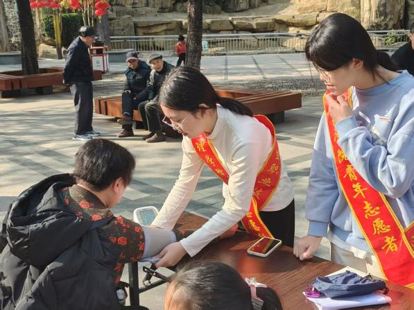 在測(cè)量血壓區(qū)域,他們動(dòng)作嫻熟,一邊輕聲安撫著略顯緊張的鄉(xiāng)親,一邊精準(zhǔn)操作儀器。仔細(xì)記錄數(shù)據(jù)后,還耐心地為鄉(xiāng)親講解血壓知識(shí),給出合理建議,用專(zhuān)業(yè)與熱忱詮釋著醫(yī)者仁心,傳遞著青春正能量。