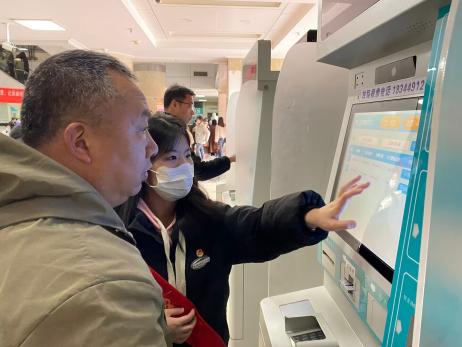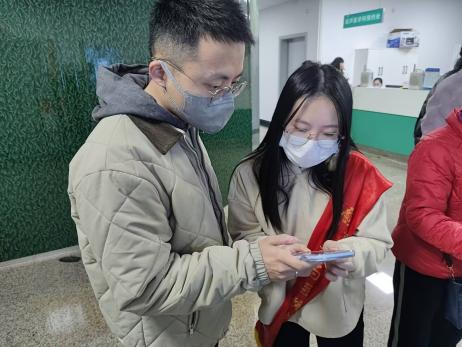 活動現(xiàn)場,志愿者們化身為“雷鋒”,穿梭在人群中,為前來就醫(yī)的患者提供幫助。許多患者對醫(yī)保電子憑證機(jī)的使用感到陌生,因此志愿者們耐心細(xì)致,從打開醫(yī)保電子憑證的第一步開始,一步步演示如何在機(jī)器上掃碼完成掛號、繳費(fèi)等操作。他們用通俗易懂的語言,不厭其煩地講解,直到患者完全掌握。