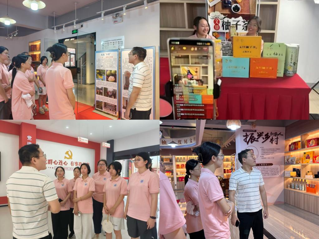 在柚相鄰二樓產(chǎn)業(yè)能級提升中心,同時也是文旦柚助農(nóng)直播基地,隊員們積極參與助農(nóng)直播,詳細介紹文旦柚的營養(yǎng)價值、特色口感以及柚子茶、柚子醬、柚子果脯等衍生產(chǎn)品的制作工藝和風(fēng)味。依托合作基地,他們積極建言獻策,推動加強品牌建設(shè),打造具有地域特色和市場競爭力的文旦柚品牌,促進產(chǎn)業(yè)向標準化、規(guī)?;?、品牌化發(fā)展,讓小小文旦柚真正“聯(lián)”通千家萬戶,成為撬動鄉(xiāng)村振興、凝聚最美鄉(xiāng)韻的“黃金果”。