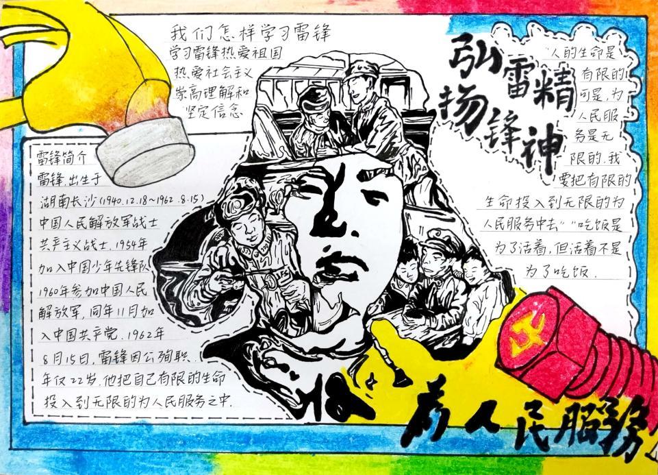在這里,眾人拿起畫筆,通過繪制海報(bào)、手抄報(bào)、漫畫等形式,生動(dòng)地講述雷鋒的感人故事。讓每一抹鮮艷的色彩、每一處巧妙的排版,都成為傳遞雷鋒精神的橋梁,讓那些溫暖人心的事跡,在作品中鮮活呈現(xiàn)。