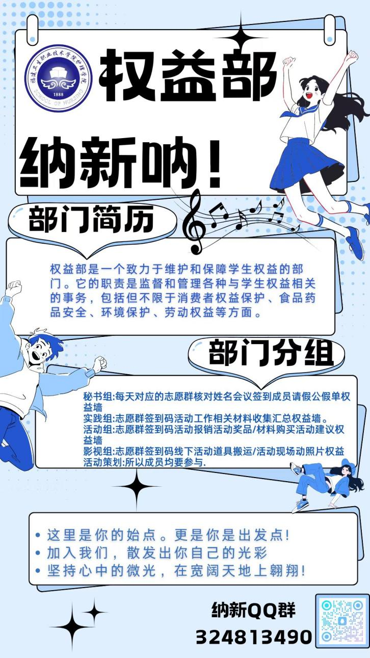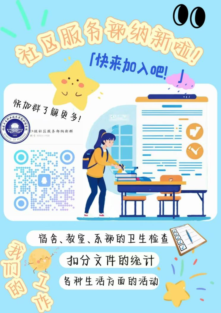 加入學(xué)生會,你將擁有更多的機會參與到學(xué)校的管理和建設(shè)中,為自己的大學(xué)生活增添一抹絢麗的色彩。不要再猶豫了!加入學(xué)生會活動多多,機會多多,各個部門覆蓋你校園學(xué)習、生活的方方面面,快來掃描二維碼加入我們納新群,多多了解我們吧!期待在9月9日晚上與你相遇!