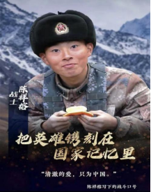 陳祥榕(2001.12-2020.6),中國人民解放軍某機步營站士。2020年6月在邊境沖突中,突入重圍,營救戰(zhàn)友,英勇戰(zhàn)斗,奮力反擊,毫不畏懼,直至壯烈犧牲。英雄雖已離去,精神永駐邊關(guān)。“清澈的愛,只為中國”這是18歲陳祥榕寫下的戰(zhàn)斗口號。