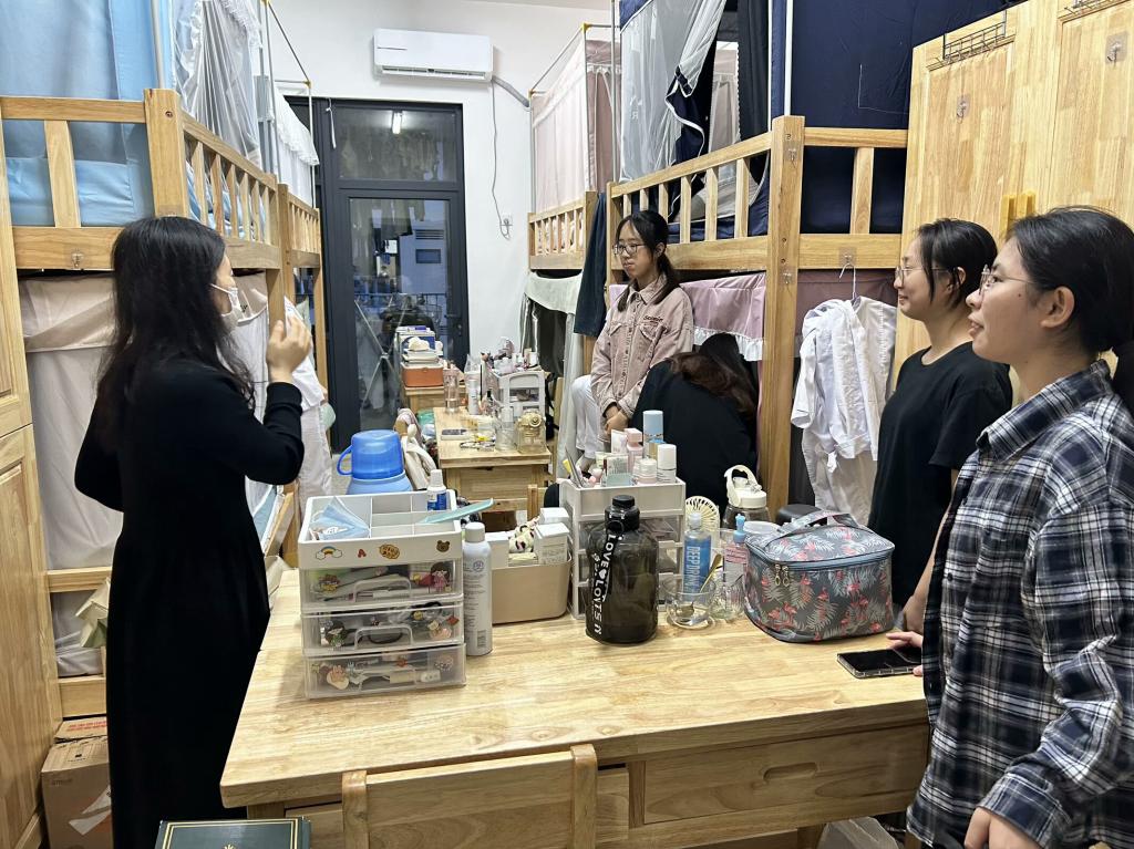 學(xué)院走訪結(jié)束后,輔導(dǎo)員們接過安全“接力棒”,開啟了更為精細、全面的宿舍核查行動。他們依據(jù)前期記錄,逐一對每間宿舍展開“地毯式”排查。復(fù)查電器隱患整改情況,并圍繞人際關(guān)系、心理健康等軟性安全因素展開交流,詢問室友相處是否融洽、近期學(xué)業(yè)壓力下情緒有無異常波動,憑借敏銳的觀察力與暖心的溝通,化解潛在心理焦慮。