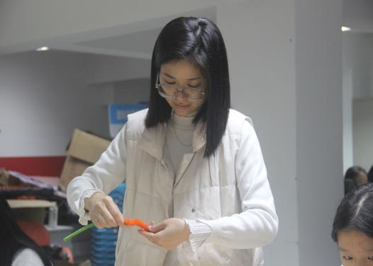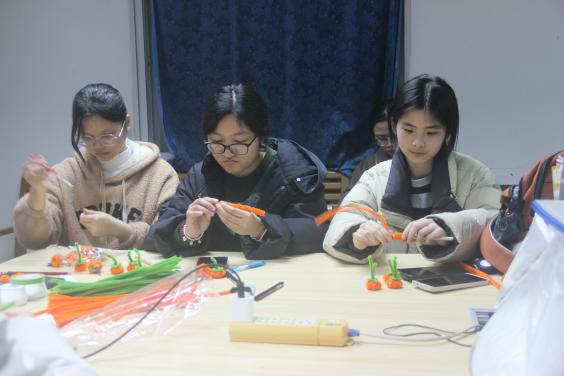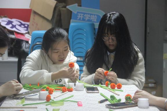 同學們運用扭扭棒、熱熔膠、剪刀等工具,看似簡單的一顆顆小柿子,大家都做的都萬分認真。同學們輕輕地把扭扭棒卷上,再各種的穿插,過程中大家都小心翼翼,只為把手中的作品做的最美、最好!