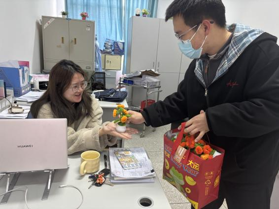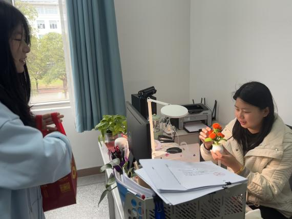 3月7日上午,學院學生代表們捧著親手制作的禮物,帶著全體學生的深情厚意,向辛勤耕耘的老師致以最崇高的敬意。這些創(chuàng)意滿滿的扭扭棒花束,雖不及真花那般嬌艷,卻蘊含著同學們無盡的感激與祝福。每一盆小花,都是對老師無私奉獻的最好回饋。當老師們接過這特別的禮物時,臉上洋溢出的笑容,比任何語言都更能觸動我們的心弦。