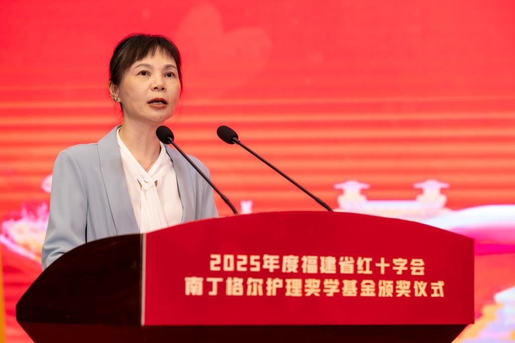 楊飛燕宣讀《關(guān)于頒發(fā)2025年度福建省紅十字會(huì)南丁格爾護(hù)理獎(jiǎng)學(xué)基金獎(jiǎng)勵(lì)的決定》,30名獲獎(jiǎng)學(xué)生代表分批走上舞臺(tái),接受頒獎(jiǎng)。