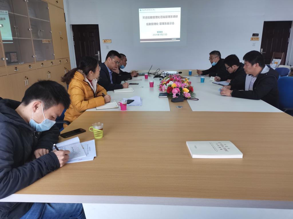 為進一步深入了解系部工作需求,更好地為系部服務,4月23日下午,后勤管理處艾松軍處長一行4人來到管理系開展工作調(diào)研。管理系黨政領導班子、實訓室林文霖主任參加座談會。