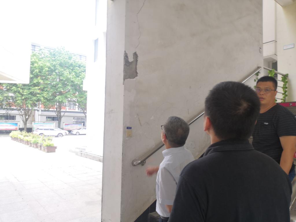 陳貞健副院長實地查看了校內(nèi)樓宇疑似結(jié)構(gòu)安全隱患點(diǎn)。他指出,安全工作是一切工作的基礎(chǔ),要認(rèn)真落實上級關(guān)于房屋結(jié)構(gòu)安全隱患排查整治工作的部署,全面排查,精準(zhǔn)聚焦,強(qiáng)力整治。要堅持分類施策,經(jīng)復(fù)查確認(rèn)屬于非結(jié)構(gòu)安全的隱患點(diǎn),要安排修繕隊及時修復(fù);經(jīng)復(fù)查仍無法判斷是否屬于結(jié)構(gòu)安全隱患的,應(yīng)聘請有資質(zhì)的第三方機(jī)構(gòu)進(jìn)行檢測鑒定;經(jīng)復(fù)查確認(rèn)為結(jié)構(gòu)安全隱患的,應(yīng)立即封閉停用,并報告建筑所在地政府部門,根據(jù)政府部門的要求進(jìn)一步采取整改措施,務(wù)必整改到位,堅決防止安全事故發(fā)生。