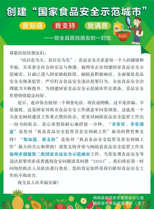 我校積極配合閩侯縣食品安全委員會(huì)辦公室協(xié)創(chuàng)“國(guó)家食品安全示范城市”