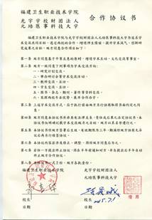 ★ 2009年11月,與元培醫(yī)事科技大學(xué)簽訂締結(jié)姊妹院校協(xié)議書,雙方在醫(yī)學(xué)影像專業(yè)人才培養(yǎng)、合作辦學(xué)、學(xué)術(shù)交流等方面開展合作。2015年,我院與元培醫(yī)事科技大學(xué)續(xù)簽合作協(xié)議。