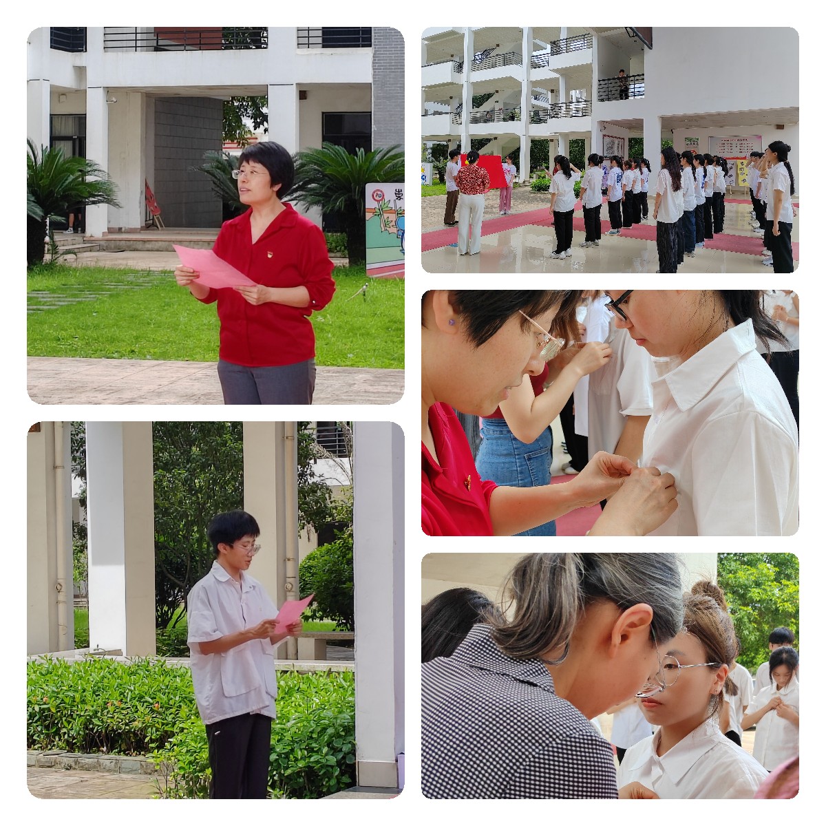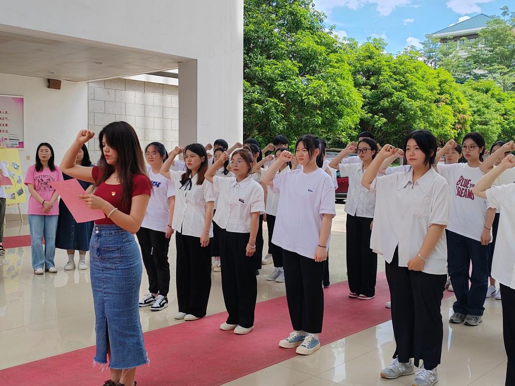 宣誓儀式在教學(xué)樓前進(jìn)行,雄壯肅穆的國(guó)際歌拉開(kāi)儀式帷幕。林燕同志宣讀參加入黨宣誓儀式的預(yù)備黨員名單。在厲逢妹同志的帶領(lǐng)下,預(yù)備黨員面向黨旗莊嚴(yán)宣誓。激昂的誓言字字千鈞,擲地有聲,久久回蕩,留下閩衛(wèi)院黨員學(xué)子的忠誠(chéng)承諾。