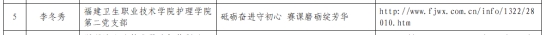 近日,中共福建省委教育工委公布高校黨支部工作“立項活動”優(yōu)秀成果和“黨員好故事、書記好黨課、支部好案例”獲獎名單。我校共有2個項目入選,其中,護(hù)理學(xué)院第一黨支部《以“一體引領(lǐng)、兩翼齊飛、三力并進(jìn)”推進(jìn)黨建與業(yè)務(wù)同頻共振》獲支部立項三等獎;護(hù)理學(xué)院第二黨支部李冬秀《砥礪奮進(jìn)守初心 賽課磨礪綻芳華》獲“黨員好故事”。