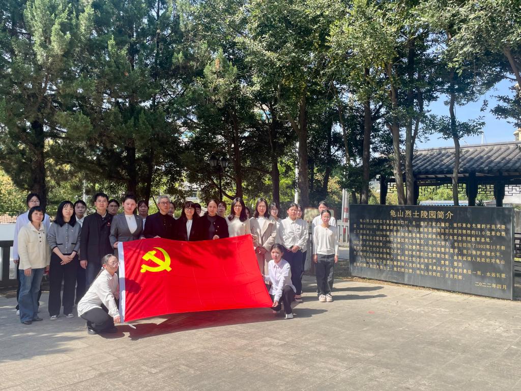 簽約儀式結(jié)束后,雙方黨員開展第一次黨建共建主題黨日活動(dòng),攜手習(xí)近平新時(shí)代中國(guó)特色社會(huì)主義思想讀書社學(xué)生代表徒步前往龜山烈士陵園,開展清明節(jié)祭掃。清風(fēng)撫碑訴哀思,松柏靜穆悼英靈。在革命烈士紀(jì)念碑前,全體師生整齊列隊(duì),敬獻(xiàn)鮮花、默哀致敬。隨后,黨員代表陳潔老師在烈士紀(jì)念碑前結(jié)合自身經(jīng)歷,講述在工作中對(duì)初心使命的踐行,表示將以革命烈士為榜樣,加強(qiáng)黨性修養(yǎng),永葆共產(chǎn)黨人政治本色,以優(yōu)良的作風(fēng)凝心聚力干事創(chuàng)業(yè)。讀書社學(xué)生代表林俐從青年視角出發(fā),暢談對(duì)理想信念的深刻理解,并表示將始終秉承英烈遺志,激發(fā)奮進(jìn)力量,在新時(shí)代新征程中展現(xiàn)青年新作為新?lián)?dāng)。