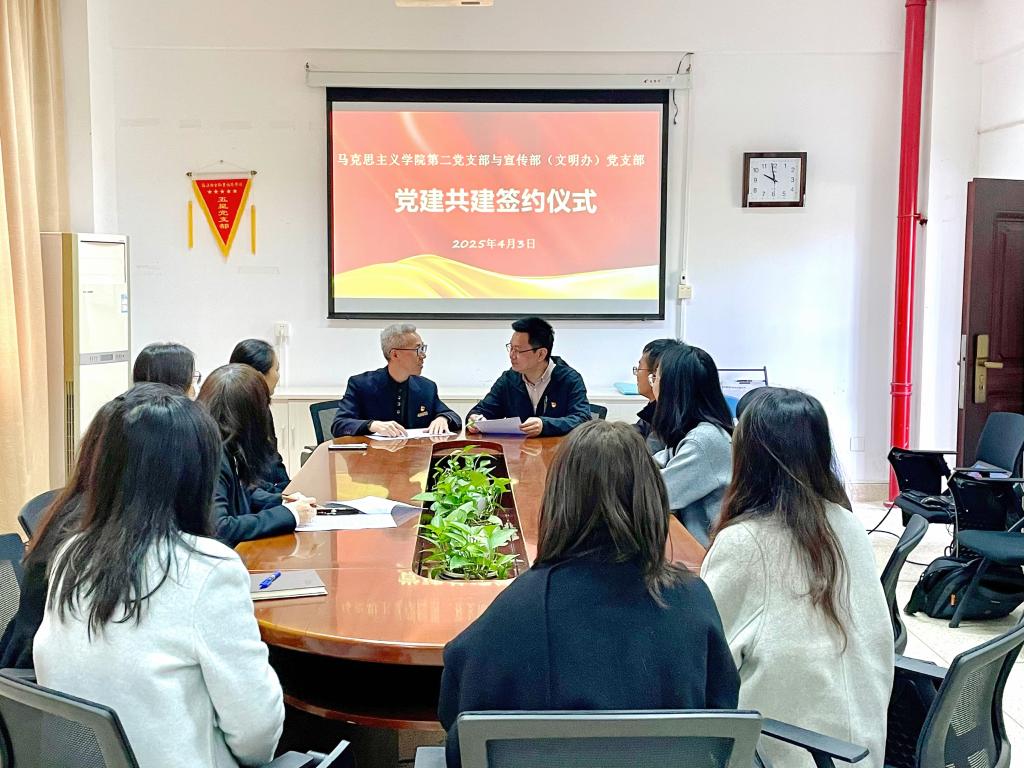 為充分發(fā)揮基層黨支部戰(zhàn)斗堡壘作用,推動(dòng)學(xué)校機(jī)關(guān)黨建與學(xué)院黨建在落實(shí)立德樹人根本任務(wù)上的深度融合,馬克思主義學(xué)院第二黨支部與宣傳部(文明辦)黨支部在厚德樓107室舉行黨建共建簽約儀式。共建雙方表示,將以此為新起點(diǎn)、新契機(jī),通過集體學(xué)習(xí)、走訪紅色實(shí)踐基地、探索網(wǎng)絡(luò)輿情引導(dǎo)隊(duì)建設(shè)、合力打造校園理論宣講團(tuán)等形式,開展黨員教育陣地、理論教育陣地、網(wǎng)絡(luò)宣傳陣地、校園文化陣地的特色化共建,努力為創(chuàng)新學(xué)校基層黨建形式、提升黨建質(zhì)量提供有效范例。