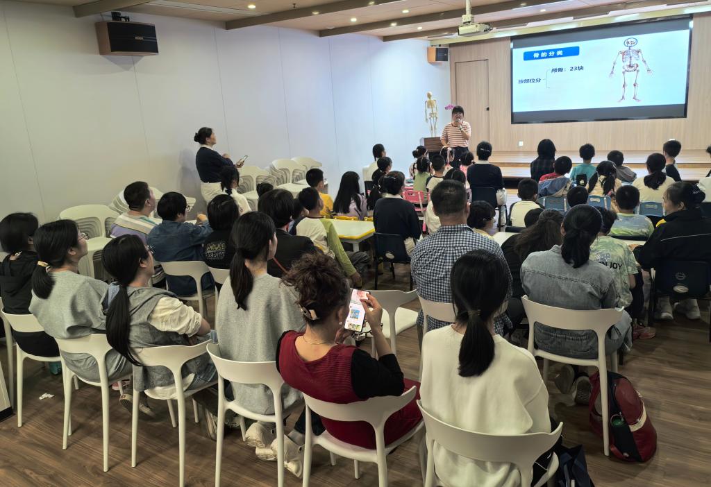 支部黨員教師圍繞“人體探秘”宣講主題,帶著到場的近三十名社區(qū)兒童學(xué)習(xí)骨骼知識。黨員教師用通俗易懂的語言結(jié)合模型展示,穿插趣味提問與生動互動,讓抽象的醫(yī)學(xué)知識變得直觀易懂,使孩子們快速了解骨骼知識,在孩子們心中播下了探索人體奧秘的種子。