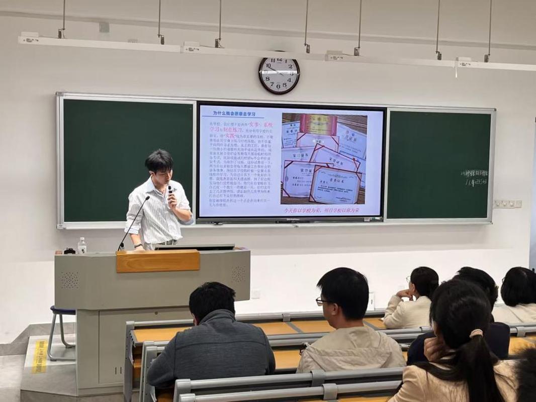 在隨后的分享會(huì)上,黃德興與2025級(jí)醫(yī)學(xué)檢驗(yàn)技術(shù)專(zhuān)業(yè)學(xué)生進(jìn)行了“與學(xué)長(zhǎng)話(huà)職業(yè)成長(zhǎng)”分享交流。他不僅分享了多位同窗校友在各自崗位上的卓越業(yè)績(jī),更結(jié)合自身從青澀學(xué)子迅速成長(zhǎng)為崗位能手的經(jīng)歷,圍繞核心能力儲(chǔ)備、清晰職業(yè)規(guī)劃與持續(xù)自我提升等問(wèn)題,傾囊相授其從校園走向職場(chǎng)的心得感悟。在互動(dòng)環(huán)節(jié),同學(xué)們圍繞崗位認(rèn)知、職業(yè)規(guī)劃等困惑與黃德興學(xué)長(zhǎng)進(jìn)行深入交流,現(xiàn)場(chǎng)氣氛熱烈,思想的火花不斷碰撞。