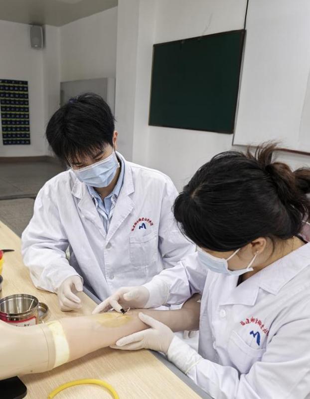 活動(dòng)伊始,黃德興首先展示了堪稱(chēng)“指尖藝術(shù)”的“飛針采血”無(wú)痛穿刺技能。他手法精準(zhǔn)、動(dòng)作行云流水,為正在備戰(zhàn)技能競(jìng)賽的選手們示范了這一技術(shù)的核心要領(lǐng)與實(shí)戰(zhàn)心得?!翱吹綄W(xué)長(zhǎng)如此嫻熟精湛的操作,我才深刻體會(huì)到‘臺(tái)上一分鐘,臺(tái)下十年功’的真正內(nèi)涵?!币幻麄滟悓W(xué)生在觀摩后由衷感慨。這場(chǎng)“看得見(jiàn)”的技能展示,將課本上的靜態(tài)知識(shí)轉(zhuǎn)化為動(dòng)態(tài)的實(shí)踐智慧,生動(dòng)詮釋了工匠精神的內(nèi)涵。