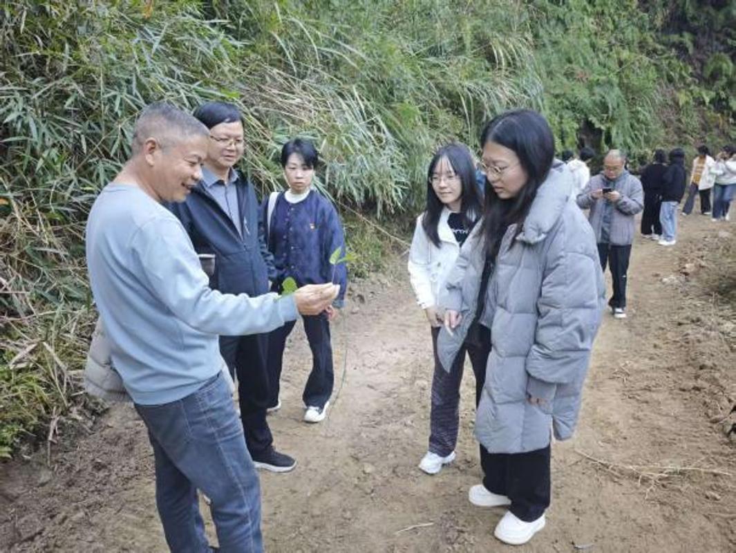 隨后,志愿服務(wù)團(tuán)隊(duì)前往石坑村牛姆山林下種植基地開展考察,重點(diǎn)圍繞中草藥種植展開經(jīng)驗(yàn)交流,深入了解種植過程中的實(shí)際情況與需求。當(dāng)?shù)乩现嗅t(yī)結(jié)合自身專業(yè)經(jīng)驗(yàn),詳細(xì)講解了特色中草藥辨識方法。同時,雙方結(jié)合基地產(chǎn)業(yè)現(xiàn)狀,對產(chǎn)品開發(fā)、營銷推廣等可提升基地附加值的舉措展開了深入討論。