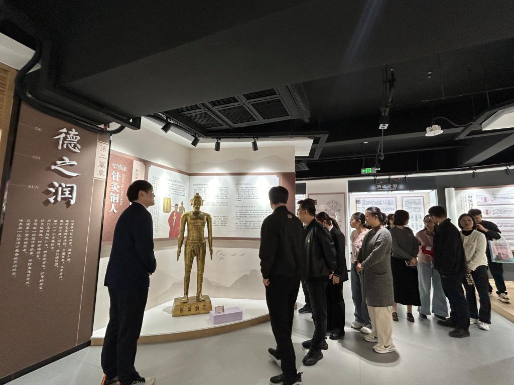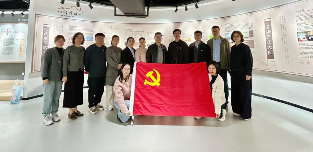 隨后,雙方黨員代表一同走進(jìn)我校中醫(yī)藥文化館,開展沉浸式參觀學(xué)習(xí)活動。在講解員的引導(dǎo)下,大家依次參觀了福建中醫(yī)藥文化、本草奧妙、閩藥薈萃、本草藝境等展區(qū),近距離觀賞中藥材標(biāo)本、傳統(tǒng)制藥工具等,詳細(xì)了解中醫(yī)藥的起源發(fā)展、本草文化精髓及閩藥特色優(yōu)勢。在濃厚的藥香與文化氛圍中,雙方圍繞中醫(yī)藥在皮膚病治療中的應(yīng)用、傳統(tǒng)炮制工藝創(chuàng)新等話題展開熱烈交流。此次參觀不僅讓雙方人員加深了對中醫(yī)藥文化的理解與認(rèn)同,更找到了科研合作、教學(xué)互補(bǔ)的契合點(diǎn),為后續(xù)深化“醫(yī)教研”協(xié)同發(fā)展奠定了堅(jiān)實(shí)基礎(chǔ)。