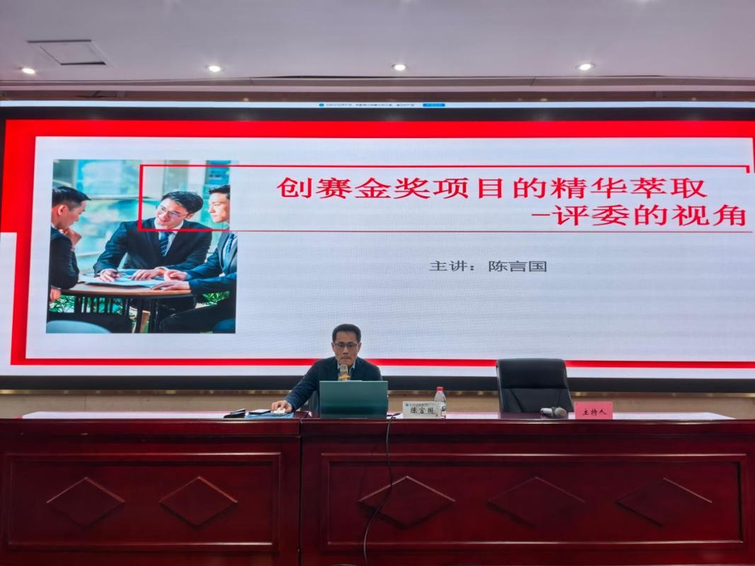 講座中,陳言國系統(tǒng)闡釋了大學生創(chuàng)新創(chuàng)業(yè)大賽的賽事定位、社會影響力及其備受重視的內(nèi)在動因,引導(dǎo)學生從更高維度認識參賽價值。