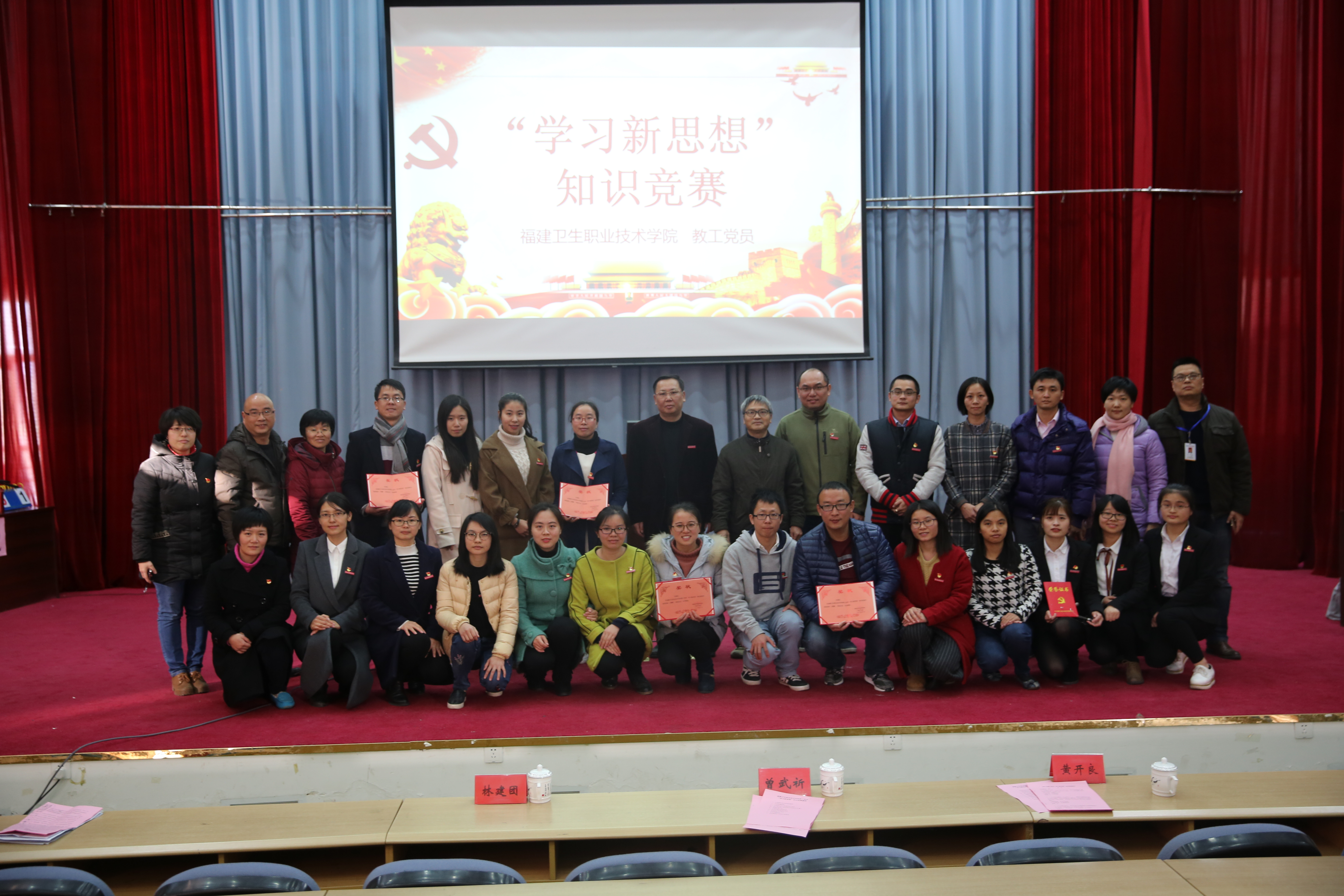 12月21日下午,我院教工黨員“學習十九大報告及新黨章”知識競賽活動在學術報告廳舉行,學院黨委曾武祈書記、林建團副書記、黃開良副院長、全體黨員、部分學生預備黨員或入黨積極分子代表350人觀看競賽。