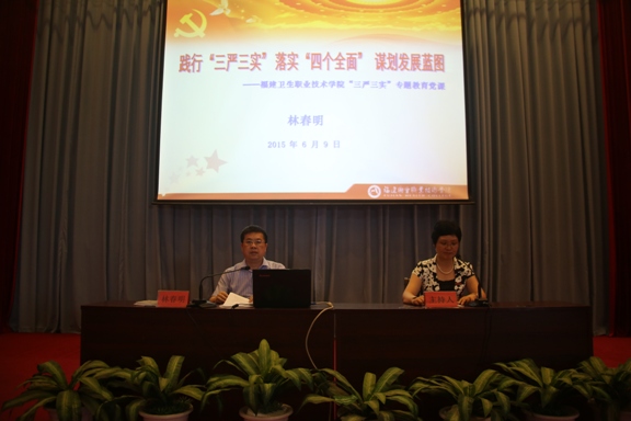 6月9日下午,學(xué)院舉行題為《踐行“三嚴(yán)三實” 落實“四個全面” 謀劃發(fā)展藍(lán)圖》的專題黨課,院黨委書記林春明主講,標(biāo)志著學(xué)院“三嚴(yán)三實”專題教育正式啟動。學(xué)院全體師生黨員、行政人員、副高以上職稱人員、教研室主任和民主黨派代表共400余人參加了專題黨課。專題黨課由院長郭素華主持。