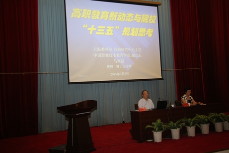 研討會特別邀請了中國職業(yè)技術(shù)教育學(xué)會副會長、高職教育發(fā)展研究中心主任馬樹超教授來校作“高職教育新動態(tài)和院校‘十三五’規(guī)劃思考”專題講座。馬樹超教授的講座從新常態(tài)思路下高職教育新動態(tài)、現(xiàn)代職業(yè)教育新定位、高職發(fā)展環(huán)境特征與改革發(fā)展策略思考等三個部分展開,在把握“十三五”發(fā)展環(huán)境與階段特征的基礎(chǔ)上確立“十三五”發(fā)展目標(biāo)和總體思路,強調(diào)面對“互聯(lián)網(wǎng)+”的新常態(tài),高職院校要加快智慧校園和數(shù)字教學(xué)資源建設(shè),完善信息化教學(xué)基礎(chǔ)設(shè)施、深化在線信息技術(shù)環(huán)境下工學(xué)結(jié)合教與學(xué)模式改革。