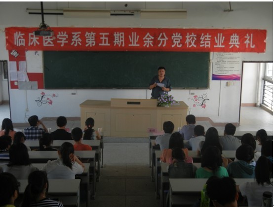 6月5日下午,醫(yī)學(xué)基礎(chǔ)部臨床醫(yī)學(xué)系黨總支于系部二階舉行第五期系部分黨校結(jié)業(yè)典禮。院黨委工作部董榕部長、院團(tuán)委宋維書記、臨床醫(yī)學(xué)系第一黨支部書記林浩老師、團(tuán)總支書記邱萍老師、輔導(dǎo)員林家福、沈夢(mèng)茜及第五期業(yè)余分黨校的全體學(xué)員出席本次典禮。