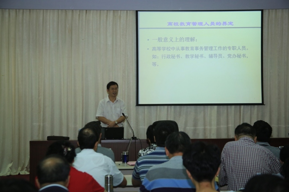 8月27日上午,培訓(xùn)班舉行開(kāi)班儀式。郭素華院長(zhǎng)首先講話,她對(duì)學(xué)院當(dāng)前的發(fā)展形勢(shì)進(jìn)行了全面分析,要求中層干部進(jìn)一步解放思想,加強(qiáng)自身五個(gè)方面的能力建設(shè),推動(dòng)學(xué)院各項(xiàng)工作上水平、上層次。開(kāi)班儀式還邀請(qǐng)福建師范大學(xué)諶啟標(biāo)教授主講《高效能教育管理人員之專業(yè)角色與職業(yè)幸福》專題講座。