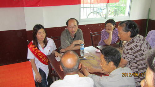 6月27日,實踐團隊一行14人(其中學院老師6人,附屬醫(yī)院醫(yī)生1人,學生7人)在魏立娜副院長的帶領(lǐng)下,經(jīng)過5個小時的行程,順利到達川石鄉(xiāng)后,即在川石鄉(xiāng)川石村村部設(shè)置義診點,開始了本次的社會實踐。來自我院附屬省級機關(guān)醫(yī)院的專家首先為當?shù)氐睦习傩兆隽艘惶蒙钊霚\出的健康教育講座,而后又開展了體檢義診贈藥和醫(yī)保宣傳、獻血控煙宣傳等活動,前來咨詢的群眾絡(luò)繹不絕,現(xiàn)場氣氛熱烈。次日早晨,實踐團隊在川石鄉(xiāng)相關(guān)領(lǐng)導的陪同下,深入川石鄉(xiāng)更加偏僻的邊溪村,考察基層的衛(wèi)生資源狀況并進行義診體檢贈送藥品活動。