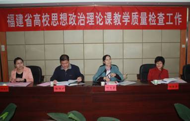 2012年11月22日下午,由福建農(nóng)林大學(xué)馬克思主義學(xué)院院長葉飛霞教授任組長,福建工程學(xué)院思政部主任楊偉才教授、福建師范大學(xué)馬克思主義學(xué)院院長助理?xiàng)盍窒愀苯淌凇⑹∥逃の麄鞑繗W陽迪莎主任科員任組員的檢查組一行4人蒞臨我院,對我院思想政治理論課教學(xué)質(zhì)量進(jìn)行檢查指導(dǎo)。學(xué)院黨委陳雄副書記、廖偉堅(jiān)副院長、黃開良副院長、魏立娜副院長,黨委工作部、教務(wù)處、學(xué)生工作處、人事處、科研處、財(cái)務(wù)處、團(tuán)委、各系部黨總支等相關(guān)職能部門負(fù)責(zé)人,思想政治理論課教研部黨政領(lǐng)導(dǎo)和全體思想政治理論課教師參加了匯報(bào)會(huì)和專家反饋會(huì)。會(huì)議由廖偉堅(jiān)副院長主持。