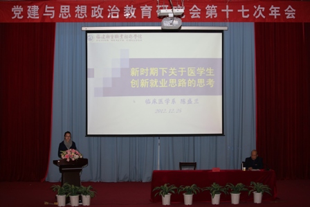 2012年12月25日下午,我院黨建和思想政治教育研究會第十七次年會在學術報告廳召開。這次會議的主題是:努力做好黨建與思想政治教育工作,為全面建設示范性高職院校做貢獻。會議的主要內容是:回顧總結2011學年我院黨建和思想政治工作的做法和經驗,進一步探索新形勢下黨建和思想政治教育的有效途徑,提出當前和今后一個時期我院黨建和思政工作的要求和重點,為全面建設示范性高職院校做貢獻,為推進學院科學發(fā)展貢獻力量。全院教職員工300余人參加了會議,會議由陳雄副書記主持。