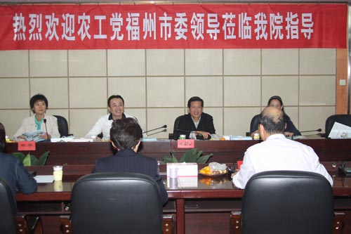 11月11日下午,福建省人大常委會委員,原福州市政協(xié)副主席、農工黨福州市原主委陳震宙、副主委林澄、丁毅黎,組織處長鄭華一行四人到我院調研。院黨委書記嚴肅、院長林春明、副書記陳雄、副院長黃開良等領導熱情接待了來訪客人。倉山區(qū)農工黨教育二支部全體成員參加了會議。