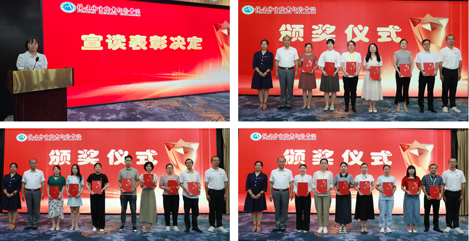 過去的一年,校外實踐教學基地教師和教育工作者以教書育人為己任,認真抓好教育教學工作,涌現(xiàn)出一批以身立教、師德高尚、業(yè)務(wù)精湛的先進工作者、優(yōu)秀教師。開班儀式上,實習實訓中心副主任梁艷宣讀了表彰文件,對上一年在臨床教學領(lǐng)域做出突出貢獻的優(yōu)秀教師和先進工作者進行表彰。許能鋒、教務(wù)處副處長李淼淼、醫(yī)學院黨委書記傅衍達為受表彰教師代表頒獎。