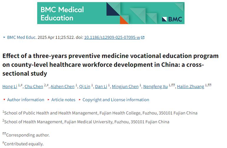 近日,我校教師在國(guó)際知名教育類學(xué)術(shù)期刊《BMC Medical Education》(JCR中科院3區(qū))上發(fā)表題為“Effect of a three-years preventive medicine vocational education program on county-level healthcare workforce development in China: a cross-sectional study”的研究文章。我校教師李宏為第一作者,許能鋒、莊海林為共同通訊作者。