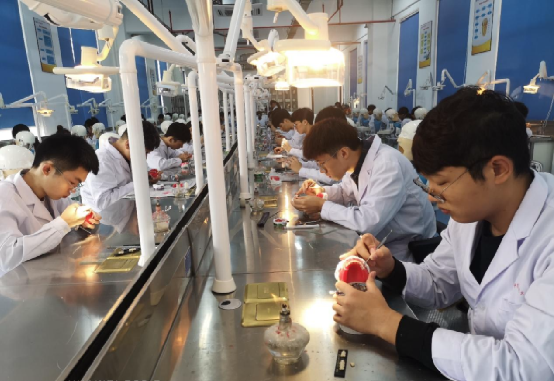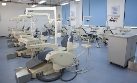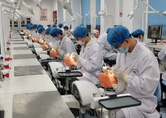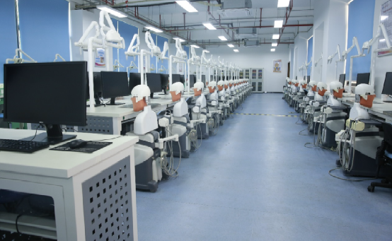 校內(nèi)實訓基地面積達700㎡,包含口腔綜合實訓室、口腔模擬診室、口腔修復工藝室及門診部口腔科等,擁有100套對接臨床的仿頭模教學系統(tǒng),教學設(shè)備總值為800多萬元,為學生開展各項實訓對接口腔臨床工作任務(wù)提供堅實的基礎(chǔ)。