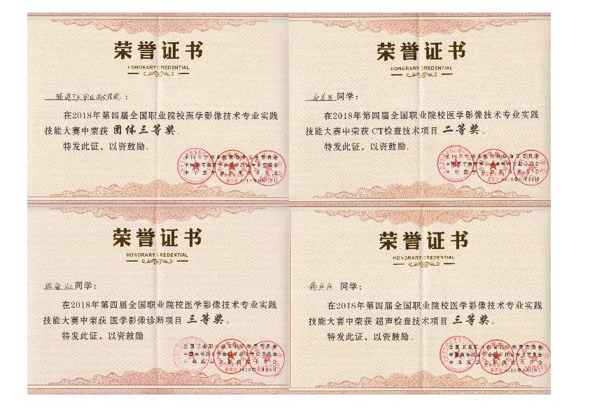 第四屆全國職業(yè)院校醫(yī)學(xué)影像技術(shù)專業(yè)實(shí)踐技能大賽獲獎證書