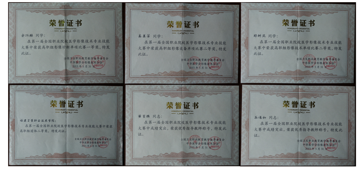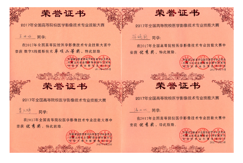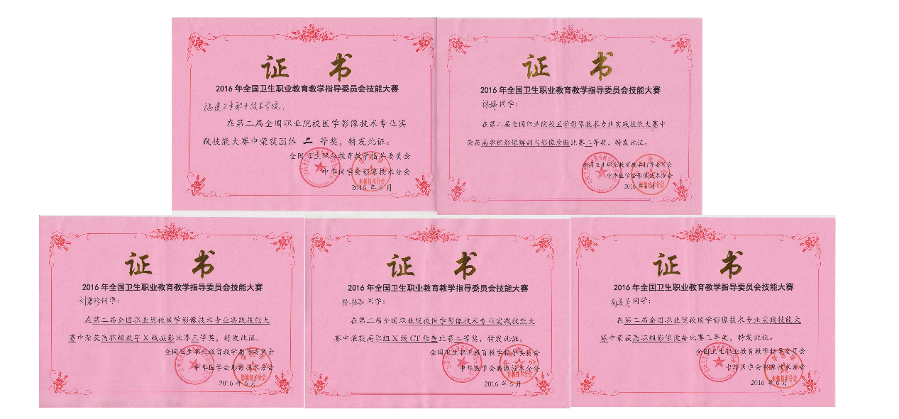 首屆全國職業(yè)院校醫(yī)學(xué)影像技術(shù)專業(yè)實(shí)踐技能大賽獲獎證書