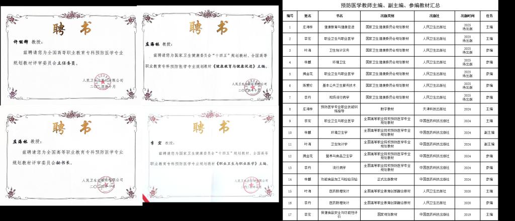 本專業(yè)以"產(chǎn)教融合 文化育人”為特色,立足于我省基層公共衛(wèi)生人才培養(yǎng),現(xiàn)有7名專任教師,專業(yè)團(tuán)隊(duì)素質(zhì)高,高級職稱4人,博士2人,省級專業(yè)帶頭人及省市級科技特派員4人,"雙師型”教師占比93.8%,多名教師持有公共衛(wèi)生執(zhí)業(yè)醫(yī)師資格證書。團(tuán)隊(duì)先后獲得各類榮譽(yù)及多項(xiàng)發(fā)明專利,主持國家級、省級、廳級課題近20項(xiàng),發(fā)表SCI等各級論文30余篇,主編、參編教材10余本。