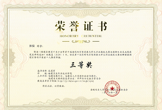 第十屆海峽兩岸暨港澳大學(xué)生職業(yè)技能大賽社群健康助理員三等獎