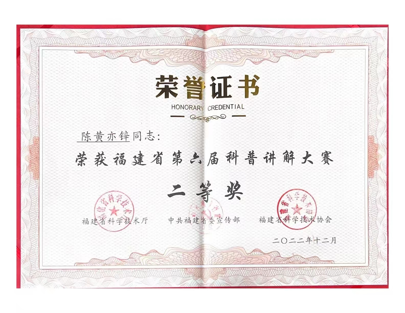 獲獎(jiǎng)證書