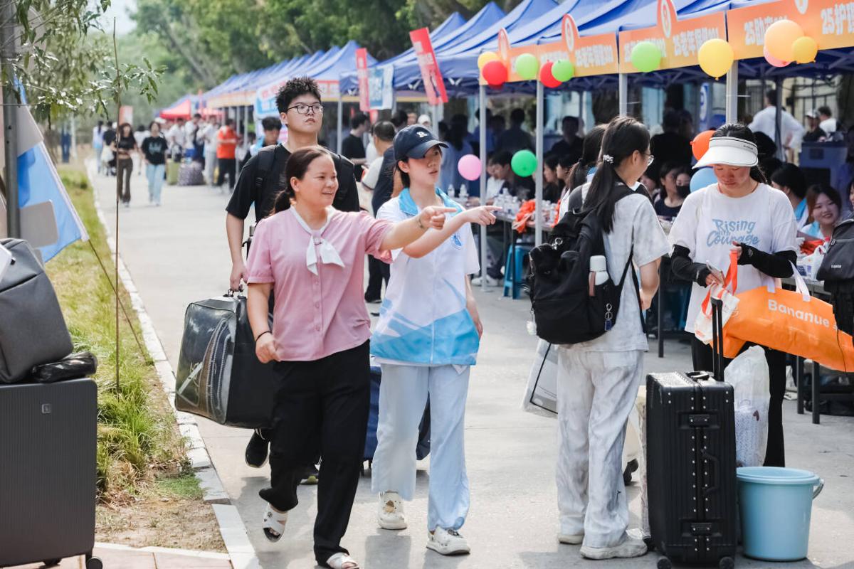 清晨的校園早已充滿活力,由教師、輔導(dǎo)員和高年級學(xué)生組成的迎新志愿者團(tuán)隊早早到位。他們身著統(tǒng)一的服裝,搬運行李、解答疑問、引導(dǎo)路線,成為校園里最亮眼的風(fēng)景線。