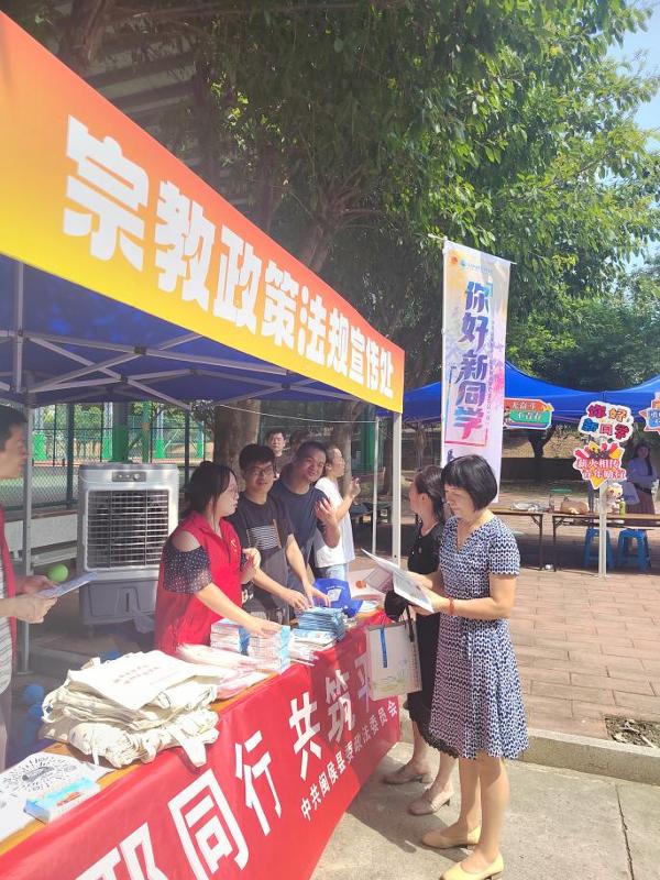 報到現(xiàn)場,學(xué)校組織統(tǒng)戰(zhàn)部聯(lián)合閩侯縣委統(tǒng)戰(zhàn)部設(shè)立宣傳專區(qū),通過展板展示、手冊發(fā)放、現(xiàn)場答疑等形式,向新生普及民族宗教政策法規(guī)。