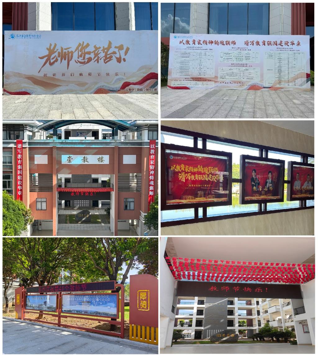 學(xué)校通過多種形式營造崇教厚德的節(jié)日氛圍。校內(nèi)電子屏滾動播放“老師,您辛苦了!”“教師節(jié)快樂!”等溫馨標語,崇健樓前擺放著慶祝教師節(jié)和老師們?nèi)〉脙?yōu)秀業(yè)績的巨幅展板,崇教樓兩側(cè)懸掛著“以教育家精神鑄魂強師,共繪教育強國建設(shè)新篇章”的條幅標語,崇學(xué)廳長廊展示著優(yōu)秀教師代表事跡;學(xué)校官方微信推出“崇教厚德——教師節(jié)表彰”專題,連續(xù)推送36位教育工作者的優(yōu)秀事跡,受到廣大師生員工的關(guān)注和轉(zhuǎn)發(fā)。