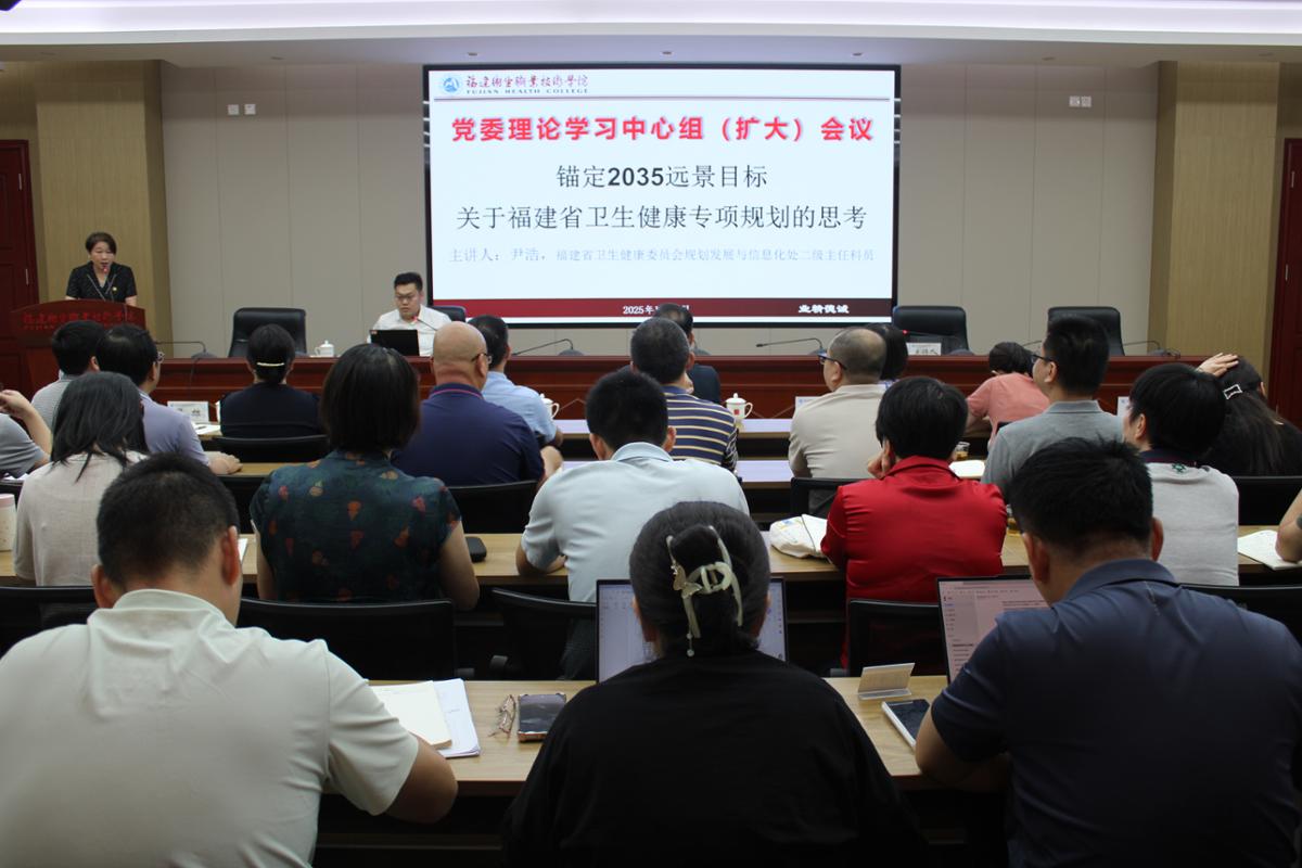 尹浩以《錨定2035遠(yuǎn)景目標(biāo)——關(guān)于福建省衛(wèi)生健康專項(xiàng)規(guī)劃的思考》為題,展開了一場(chǎng)內(nèi)容豐富、見解深刻的分享。他從宏觀戰(zhàn)略到微觀路徑,對(duì)福建省“十四五”時(shí)期衛(wèi)生健康事業(yè)發(fā)展所取得的顯著成就進(jìn)行了系統(tǒng)的梳理。同時(shí),尹浩博士詳細(xì)剖析了國(guó)家“十五五”時(shí)期衛(wèi)生健康發(fā)展階段的戰(zhàn)略部署和具體安排,以及我省衛(wèi)生健康事業(yè)發(fā)展專項(xiàng)的核心目標(biāo)、重點(diǎn)任務(wù)和創(chuàng)新思路。這些深入淺出的分析,不僅為我校拓寬“十五五”規(guī)劃編制工作思路提供了極具啟發(fā)性的見解,更為我校如何更好地服務(wù)于福建省衛(wèi)生健康事業(yè)發(fā)展、如何培養(yǎng)契合服務(wù)區(qū)域經(jīng)濟(jì)和衛(wèi)生健康需求的技能人才,帶來了重要的思考方向和實(shí)操指引。