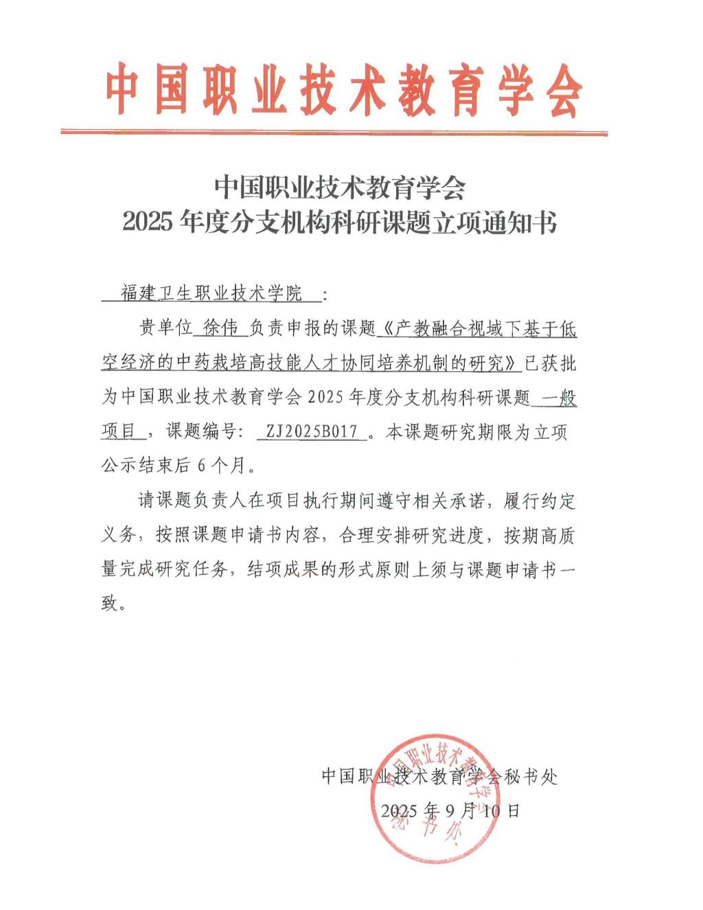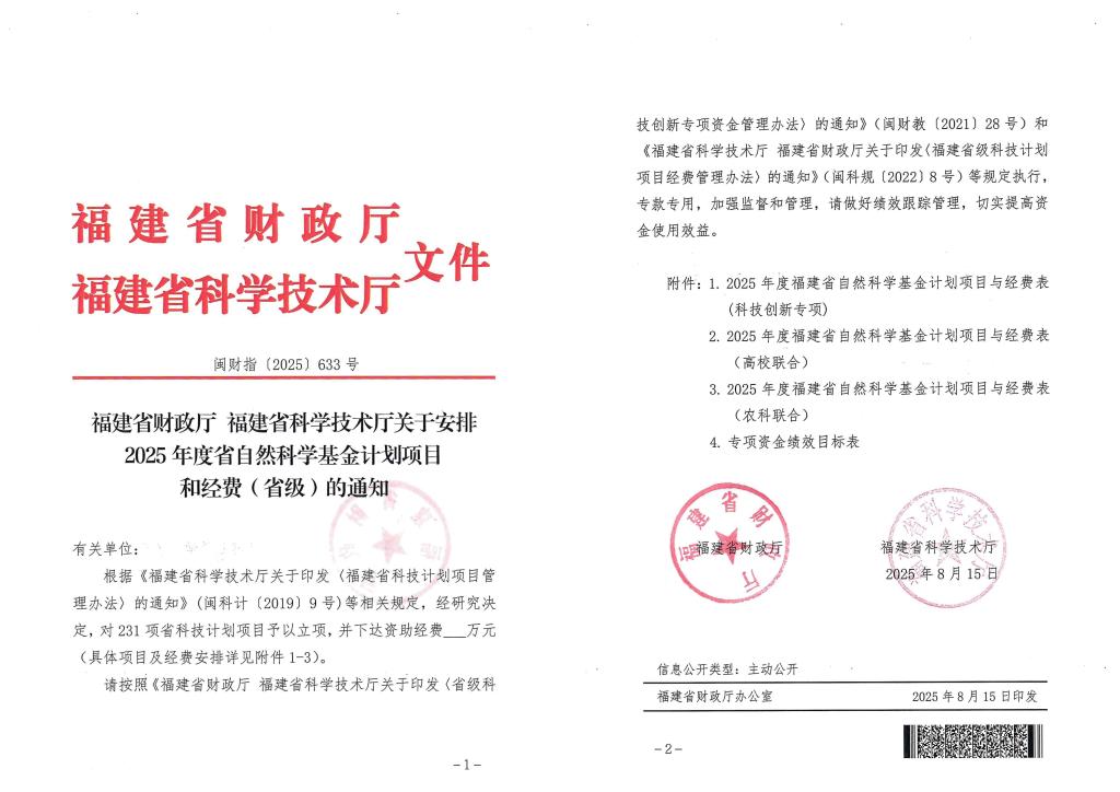 近日,2025年度中國職業(yè)技術教育學會科研課題和福建省自然科學基金項目立項結果相繼公布,我校科研工作再傳捷報:徐偉教授的課題獲中國職業(yè)技術教育學會科研課題立項,陳文倩、吳康承老師的項目分別獲得福建省自然科學基金面上項目、創(chuàng)青項目立項。