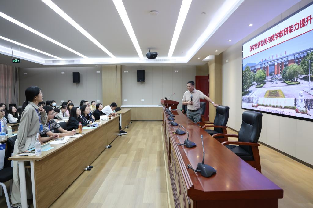 當(dāng)前,醫(yī)學(xué)教育正面臨深刻變革,從以知識傳授為中心向以能力培養(yǎng)為導(dǎo)向轉(zhuǎn)變,智慧醫(yī)療、人工智能、跨學(xué)科融合等新興技術(shù)與理念不斷重塑醫(yī)學(xué)人才培養(yǎng)模式。面對這一系列挑戰(zhàn)與機(jī)遇,提升教師的教學(xué)設(shè)計能力、課堂組織能力及教育研究水平已成為推動學(xué)校高質(zhì)量發(fā)展的關(guān)鍵環(huán)節(jié)。本次講座圍繞醫(yī)學(xué)教育的最新趨勢,深入剖析教學(xué)設(shè)計創(chuàng)新、教研項(xiàng)目申報、教學(xué)競賽備賽等關(guān)鍵環(huán)節(jié),結(jié)合典型案例,為我校教師提供可借鑒、可操作的實(shí)踐路徑。講座內(nèi)容兼具前瞻性與實(shí)用性,旨在激發(fā)教師教學(xué)熱情,增強(qiáng)教研意識,推動課堂教學(xué)質(zhì)量持續(xù)提升。