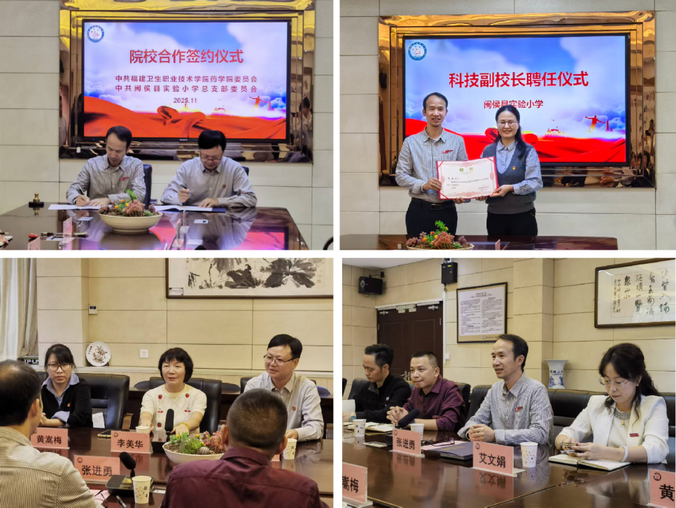 11月6日,學(xué)校黨委副書(shū)記李美華與藥學(xué)院第一、第三黨支部師生一同來(lái)到閩侯縣實(shí)驗(yàn)小學(xué)校園,開(kāi)展黨建結(jié)對(duì)共建和“科普知識(shí)進(jìn)校園”主題活動(dòng),以專業(yè)力量搭建探索文化與科學(xué)的橋梁。葉海與閩侯縣實(shí)驗(yàn)小學(xué)校黨總支書(shū)記張進(jìn)勇共同簽署共建協(xié)議,第一黨支部書(shū)記羅蘭副教授受聘為閩侯縣實(shí)驗(yàn)小學(xué)科技副校長(zhǎng),為協(xié)同育人注入新動(dòng)能,承擔(dān)起一份科普教育的責(zé)任。